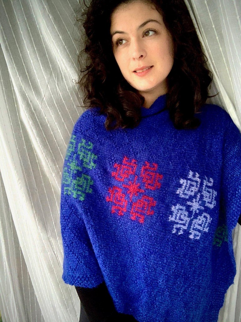 The Ozette Poncho, by Celia Roberts, incorporates the patterns used in traditional fisherman ganseys to create a poncho that will keep you warm and cozy, and bring you safely home from wherever you may roam. Worked in a heavy fingering weight or light sport weight yarn, as written, you will need about 1740 yds of yarn. Ozette can easily be resized to suit your unique vision. Shown here in Jorstad Creek Iona and Queensland Collection Oxley.